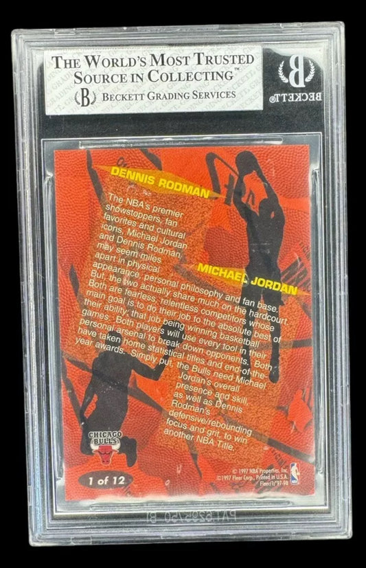 MICHAEL JORDAN DENNIS RODMAN 1997/98 FLEER #1 GAME BREAKERS BULLS SP BGS 8 NM-MT