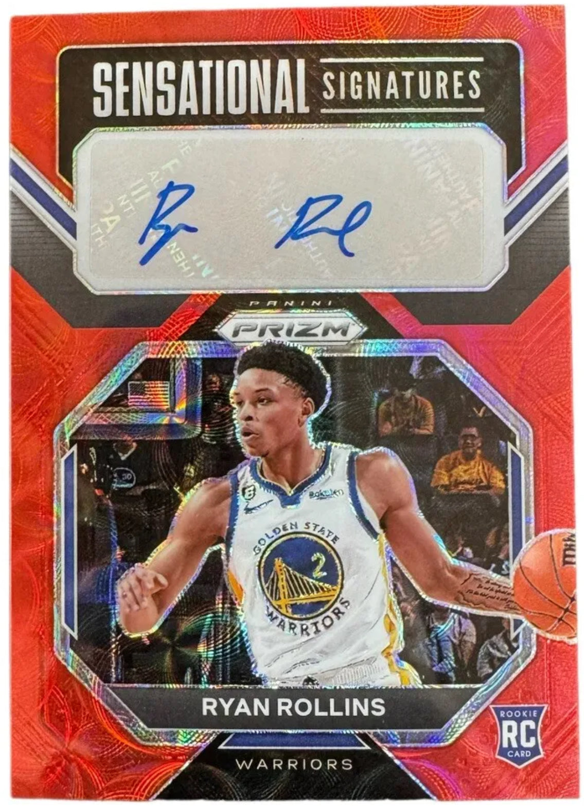 Get your hands on the 2022-23 Panini Prizm Red Scope Ryan Rollins Rookie Sensational Signatures #SS-RR trading card. This basketball sports trading card is a must-have for any Golden State Warriors fan or collector.
